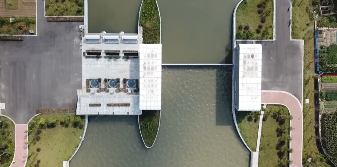 項(xiàng)目建筑設(shè)計(jì)與周邊環(huán)境完美結(jié)合。泵站及閘門上部采用無廠房設(shè)計(jì),水泵機(jī)組采用立式潛水機(jī)組,閘門采用底軸驅(qū)動(dòng)翻板門,泵站上下游視野通透,觀感效果佳。管理房屋頂設(shè)計(jì)為綠化屋頂,管理房隱藏于周邊綠化之中,滿足姚江岸高標(biāo)準(zhǔn)景觀要求。生態(tài)河道設(shè)計(jì)符合人文和諧之美。護(hù)岸采用干壘生態(tài)擋塊,中間預(yù)留魚槽設(shè)計(jì),充分體現(xiàn)了生態(tài)環(huán)保設(shè)計(jì)理念。